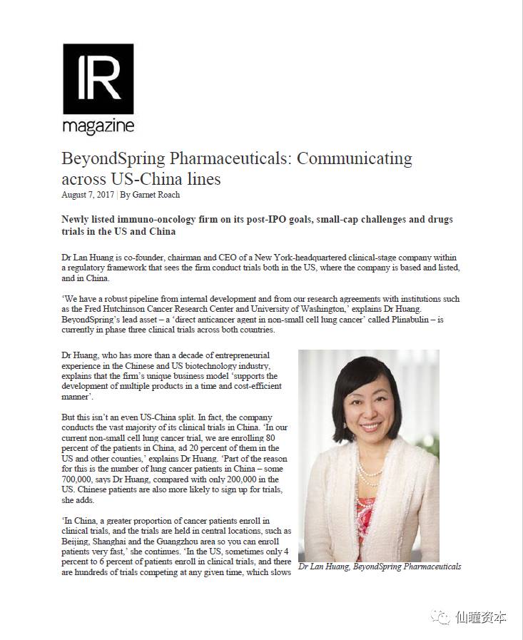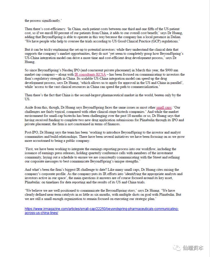 IR杂志报道链接:https://www.irmagazine.com/articles/small-cap/22250/beyondspring-pharmaceuticals-communicating-across-us-china-lines/#