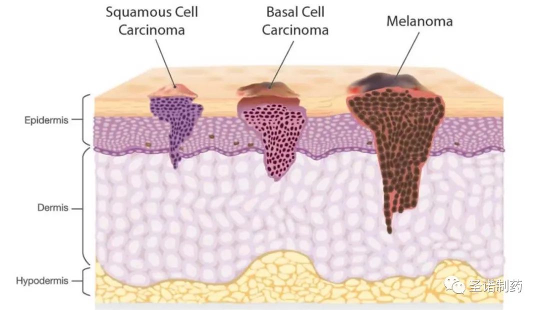 外科手术是目前治疗非黑色素瘤皮肤癌最常见的治疗方案。然而,各种形式的外科手术带来显而易见的皮肤不良事件:诸如疤痕、感染和出血等风险,而且手术治疗后也有明显的复发率。因此,能够得到FDA批准的安全有效的局部注射疗法(目前尚无),将迎合临床治疗手段上的巨大需求。